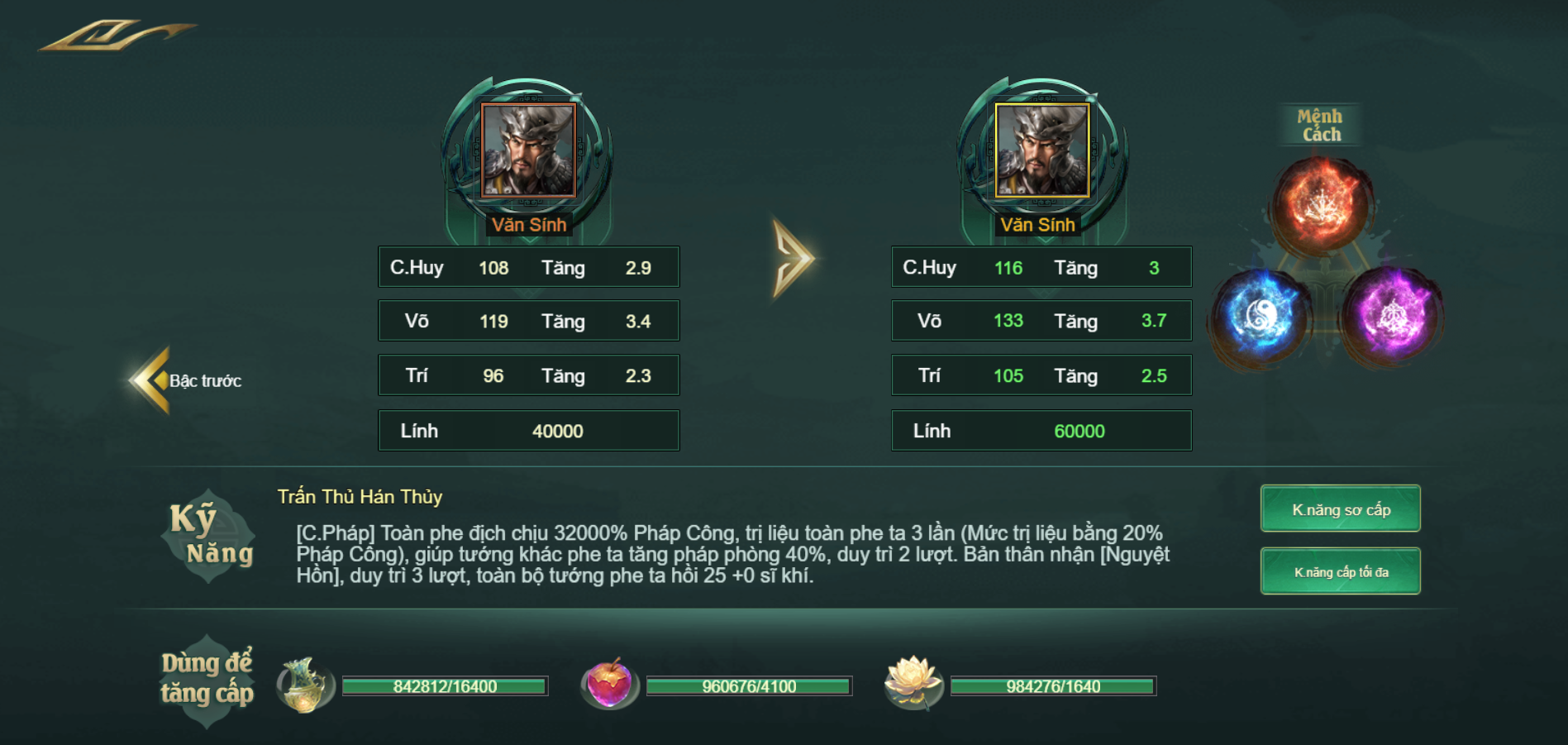 - Tăng cấp Mệnh Cách cần dùng Đá Tôi Luyện và Mệnh Hồn Luyện Ngọc, Phôi.